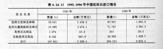 表4.24.13 1995、1996年中國(guó)花崗巖進(jìn)口情況