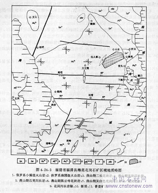 在華東區(qū),福建是中國(guó)最重要的花崗巖生產(chǎn)基地,現(xiàn)有礦山開(kāi)采點(diǎn)5 000多個(gè),板材加工企業(yè)2 500多個(gè),其中“三資”石材企業(yè)160多個(gè),花崗巖板材年產(chǎn)量達(dá)5 300多萬(wàn)m2,花崗巖石雕工藝品年產(chǎn)幾十萬(wàn)件,日式墓碑及配件10多萬(wàn)套,以上三類(lèi)產(chǎn)品產(chǎn)量均居全國(guó)首位。20多家骨干企業(yè)已經(jīng)具有合理的經(jīng)濟(jì)規(guī)模,如廈門(mén)匯興石材有限公司與其子公司全套引進(jìn)意大利生產(chǎn)線(xiàn),花崗巖板材生產(chǎn)能力達(dá)72萬(wàn)m2/a;福州磊磊石材有限公司花崗巖板材生產(chǎn)能力達(dá)25萬(wàn)m2/a。福建省生產(chǎn)的花崗巖有80多個(gè)品種,較著名的有“廈門(mén)白”、“峰白石”、“福鼎黑”、“龍?zhí)稂S”、“高平青”、“天皇石”等,以產(chǎn)淺色系列花崗巖著稱(chēng)。