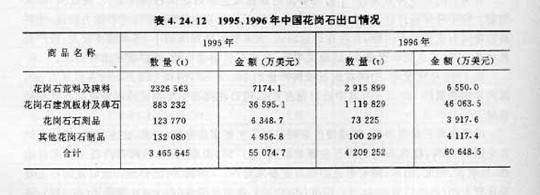 表4.24.12 1995、1996年中國(guó)花崗巖出口情況